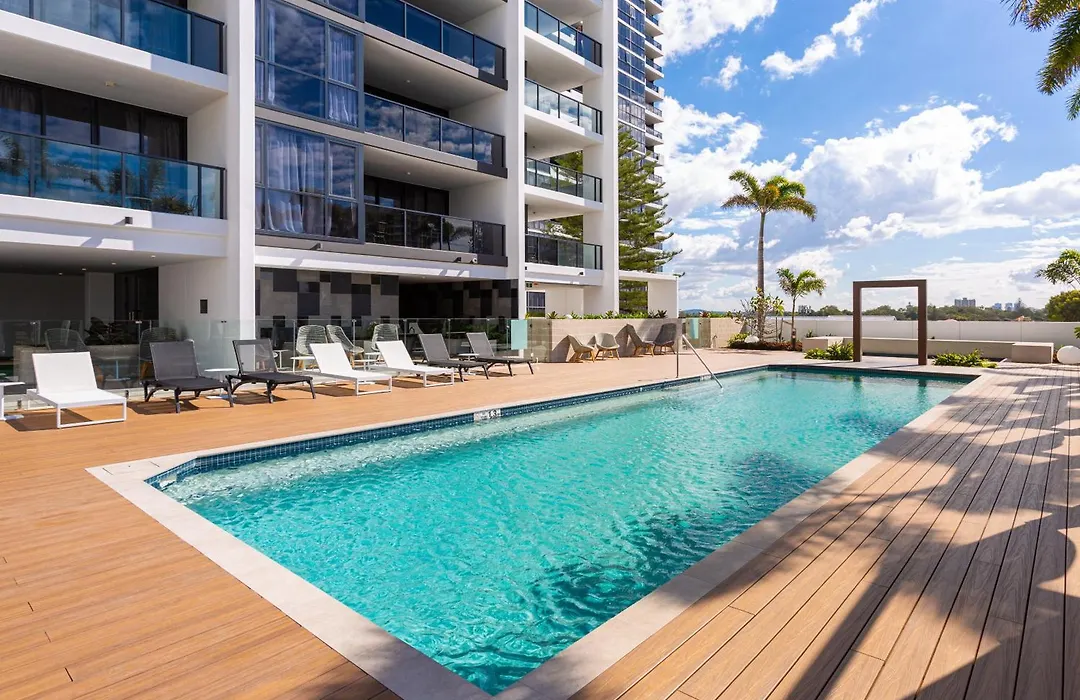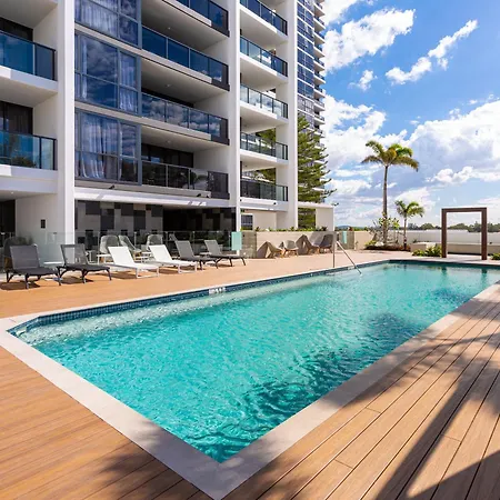 Das Serain Residences On Qube Gold Coast bietet Zimmer mit einem Blick aufs Meer und liegt im Viertel Broadbeach, in 10 Fußminuten Entfernung vom Pacific Fair Shopping Centre. Dieses 2-Zimmer-Apartment bietet einen privaten Autoparkplatz in der Nähe und moderne Annehmlichkeiten wie WLAN.